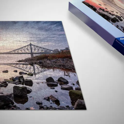 Die Szene entfaltet sich am frühen Morgen an einem idyllischen Ort in Dresden, mit Blick auf das berühmte Blaue Wunder, eine markante Brücke, die sich elegant über die Elbe spannt. Die Sonne kündigt ihr tägliches Schauspiel an, indem sie am Horizont aufsteigt und den Himmel in ein atemberaubendes Farbspiel aus leuchtenden Orangetönen, sanften Rosatönen und tiefen Blautönen taucht. Dieses Naturschauspiel spiegelt sich perfekt im ruhigen Wasser der Elbe am Loschwitzer Ufer wider, was der Szene eine fast surreale Qualität verleiht. Die absolute Windstille verstärkt die Magie des Augenblicks, indem sie eine spiegelglatte Oberfläche schafft, die Himmel und Brücke in einer perfekten Symmetrie verdoppelt. Es ist ein Moment der Ruhe und Schönheit, der die majestätische Architektur des Blauen Wunders mit der natürlichen Pracht des Sonnenaufgangs über Dresden vereint.