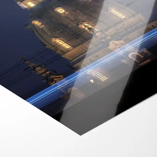 Das Foto zeigt den aufgehenden Vollmond, umgangssprachlich als “Erdbeermond” bezeichnet im Juni 2025, über der beleuchteten Kuppel der Dresdner Frauenkirche. Der Mond leuchtete in einem warmen Orange-Ton und schwebte direkt über der Turmspitze, kontrastiert vom dunklen Nachthimmel. Die Aufnahme entstand vom Elbufer aus, mit Blick über die Marienbrücke, wo gerade eine S-Bahn durch das Bild fuhr und eine Lichtspur mit Bewegungsunschärfe erzeugte.
