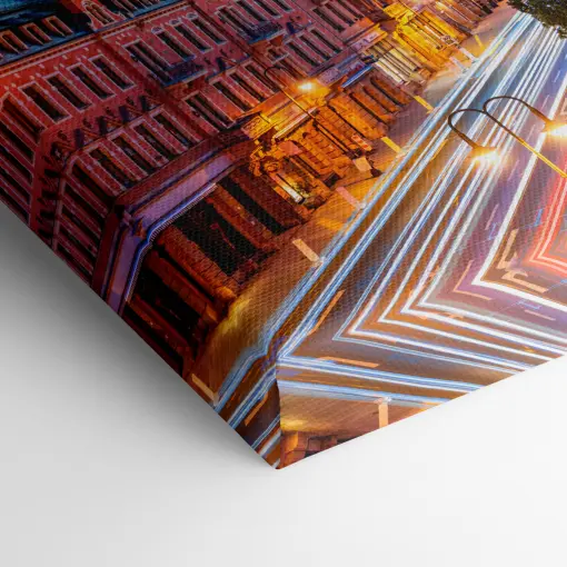 Am frühen Morgen beginnt die Stadt langsam aus dem Schlaf zu erwachen. Der Berufsverkehr zaubert leuchtende Lichtspuren auf die Straße rund um den Schillerplatz in Dresden. Der eher ungewöhnliche Blick auf den Schillerplatz und das Blaue Wunder in Verbindung mit dem beeindruckenden intensiven Morgenrot der auf Horizont aufgehenden Sonne, macht dieses Foto ganz besonders.