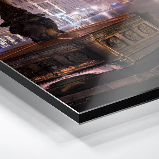 Inmitten eines dichten, fast mystischen Nebels erhebt sich die majestätische Kuppel der Dresdner Frauenkirche wie ein schimmerndes Wahrzeichen aus einer anderen Welt. Der Nebel umhüllt die barocke Silhouette sanft, lässt Konturen weich verschwimmen und verleiht dem Bauwerk eine auravolle, fast ätherische Präsenz. Links im Vordergrund ragt der Friedensbrunnen hervor, als ob er ein stiller Wächter in dieser nebligen Stille wäre. Die Szene strahlt eine tiefe Ruhe und poetische Melancholie aus, ein Moment der Ewigkeit, in dem Geschichte und Natur in harmonischem Einklang verschmelzen.