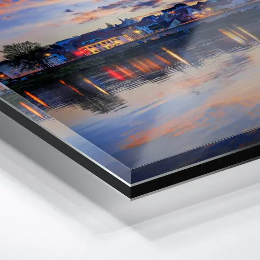 Das Bild vereint zwei magische Momente: den glühenden Sonnenuntergang mit seiner intensiven Farbpracht und die einsetzende Blaue Stunde mit ihrer tiefen, klaren Atmosphäre. Durch die geschickte Überblendung in Photoshop erscheint die Burg bereits festlich illuminiert, während der Himmel noch in der vollen Pracht des Abendrots leuchtet – ein harmonischer, fast unwirklich schöner Augenblick, der die Albrechtsburg in ihrem schönsten Licht zeigt.