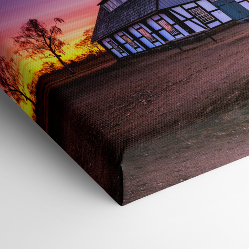 An einem kühlen Aprilmorgen, etwa 20 Minuten vor Sonnenaufgang, taucht ein intensives Morgenrot den Himmel über Freiberg in ein atemberaubendes Farbenspiel aus tiefem Violett, zartem Rosa und leuchtendem Orange. In diesem magischen Licht stehen die historischen Übertageanlagen der Alten Elisabeth – ein Kleinod des sächsischen Silberbergbaus – still und eindrucksvoll nebeneinander.