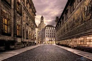 Da es einige Fragen bei Facebook & Co bezüglich der fehlenden Touristen gab. Zu dem Zeitpunkt als das Foto entstanden ist waren wirklich keinerlei Menschen im Bildausschnitt unterwegs. Lediglich eine Frau kam uns entgegen gelaufen welche man rechts am Fürstenzug sehen kann. Womöglich lag dies am schlechten Wetter der letzten Wochen.