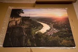 Alle Fotos werden ausschließlich auf hochwertiger Baumwolle gedruckt. Diese wird dann auf einen 3cm tiefen Rahmen auf besonders geeignetem Holz aufgezogen. Um die Leinwand so lang wie möglich vor einem Ausbleichen zu schützen, werden UV-beständige Tinten verwendet. Die genannten Dinge haben uns sofort überzeugt und somit entschlossen wir uns, den Anbieter “HalloLeinwand” zu testen.