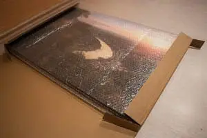 Bereits nach wenigen Tagen klingelte es an der Tür und unsere Leinwand wurde geliefert. Die Verpackung bestand aus 2 Teilen. Bei der äußeren Hülle handelte es sich um einen handelsüblichen Karton welcher sich passgenau um die Leinwand schmiegte. Um das Produkt noch zuverlässiger vor Stößen und Beschädigungen zu schützen, war die Leinwand in einer dicken Luftpolsterfolie verpackt. Nachdem die Leinwand ausgepackt war, fiel uns sofort die realistische und passende Farbwiedergabe auf. Die Leinwand überzeugte mit satten und klaren Farben ohne störende Farbstiche oder einer fehlerhaften Darstellung. Die Schärfe des Motives war gut, würde aber mit einem größeren Format noch beeindruckender rüberkommen.