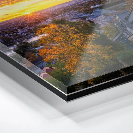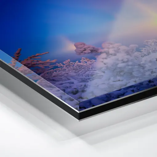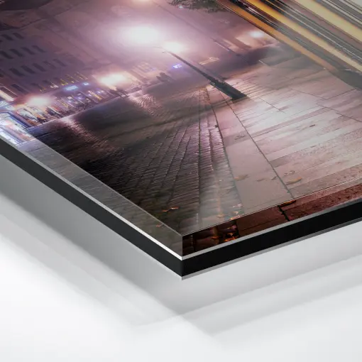 Du hast bei uns die Wahl zwischen zwei verschiedenen Varianten. Als Rückseite steht dir eine 3 mm starke schwarze Forex Platte oder ein 3 mm starkes Alu-Dibond Board zur Auswahl. Bei der Forex Variante wird das Bild mittels Direktdruck auf die Acrylglasplatte gebracht. Bei der Alu-Dibond Variante kommt ein echter Fotoabzug zum Einsatz.