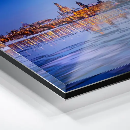 Das Acryl Board gehört zu den edelsten Möglichkeiten, ein Dresden Foto elegant und in höchster Qualität zu präsentieren. Hier findest du eine Menge Dresden Acrylglasbilder. Das Foto befindet sich hinter einer 3 mm starken Acrylglasplatte und erhält somit eine beeindruckende Tiefenwirkung. Bei Acrylglas handelt es sich um einen glasklaren und brillanten Kunststoff. Er sorgt dafür, dass die Tiefenwirkung um ein vielfaches verstärkt wird und die Farben noch deutlicher strahlen.