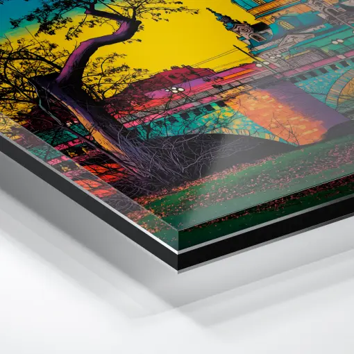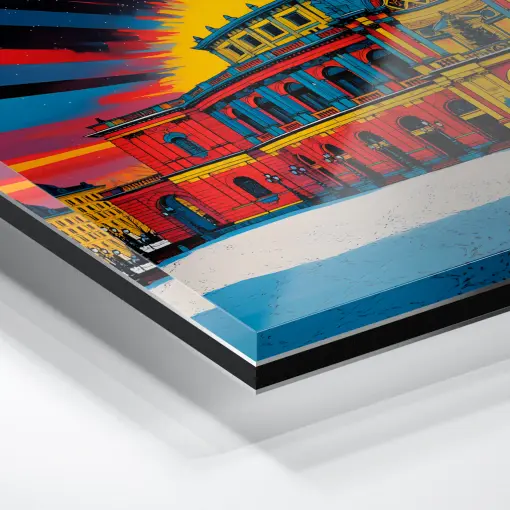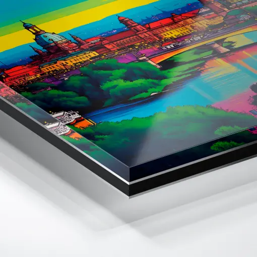 Das Acryl Board gehört zu den edelsten Möglichkeiten, ein Pop Art Foto elegant und in höchster Qualität zu präsentieren. Hier findest du eine Menge Pop Art Acrylglasbilder. Das Bild befindet sich hinter einer 3 mm starken Acrylglasplatte und erhält somit eine beeindruckende Tiefenwirkung. Bei Acrylglas handelt es sich um einen glasklaren und brillanten Kunststoff. Er sorgt dafür, dass die Tiefenwirkung um ein vielfaches verstärkt wird und die Farben noch deutlicher strahlen.