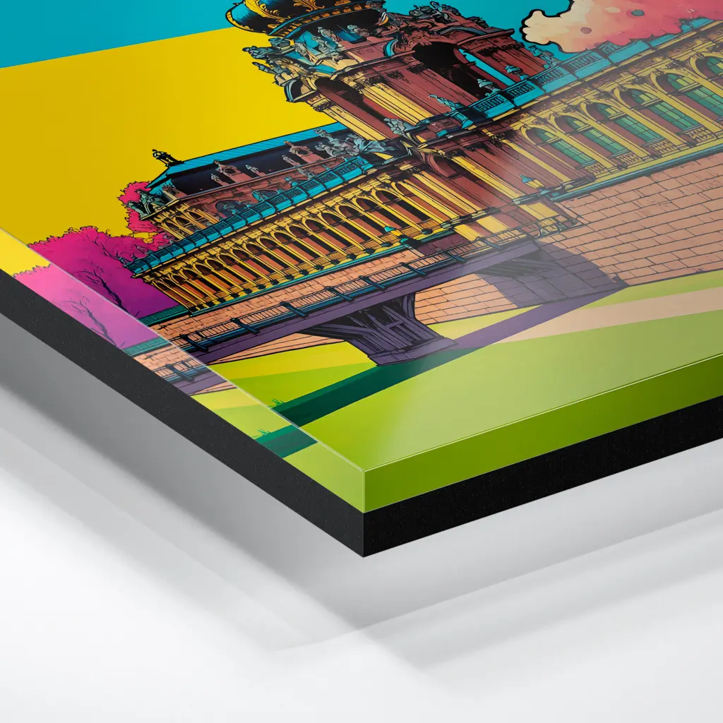 Das Foto wird im UV-Direktdruckverfahren auf eine glänzende Acrylplatte gedruckt. Die Kombination aus kristallklarem Acrylglas und den lichtechten UV-Tinten sorgt für eine langlebige und detailscharfe Wiedergabe der Bilder. Das Bild wird bei dieser Variante durch eine rückseitige 3 mm starke schwarze Forexplatte verstärkt. Es ist durch den Direktdruck und die verwendeten Materialien günstiger, wirkt aber auch sehr hochwertig.