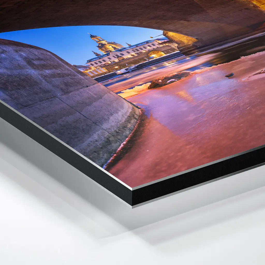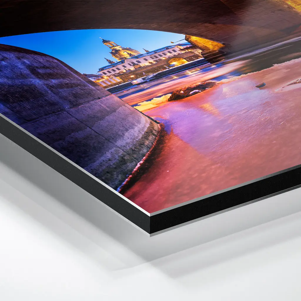 Neben den Fotopapieren die wir dir im nächsten Absatz erläutern, bieten wir dir auch einen hochwertigen UV-Direktdruck auf Alu-Dibond an. Bei einem Alu-Dibond Board handelt es sich um eine 3 mm starke, formstabile Aluminiumverbundplatte mit einem schwarzen Polyethylen-Kern, der von zwei dünnen, matt weiß lackierten Aluminiumdeckschichten umschlossen wird. Auf dieser weißen Oberfläche wir das Foto im UV-Direktdruck auf das Alu-Dibond Board gedruckt.