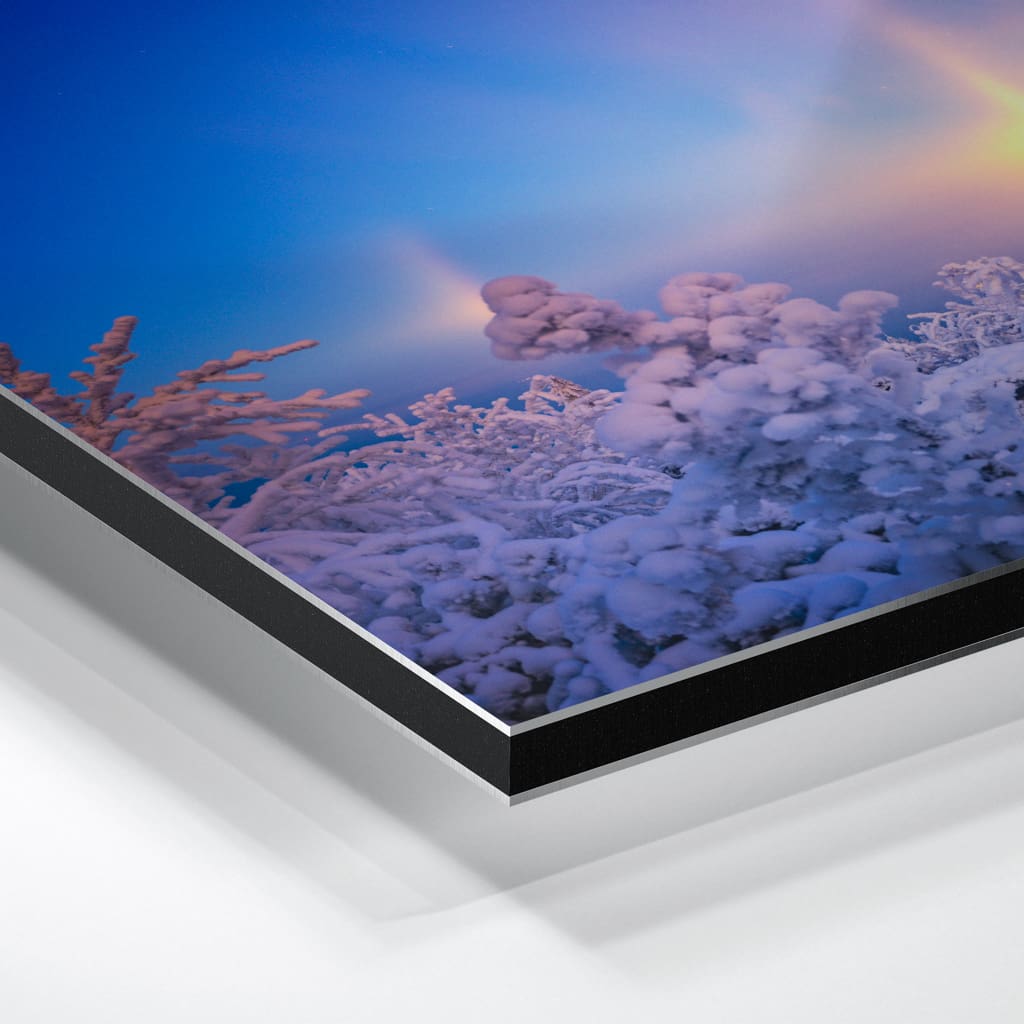 Neben den Fotopapieren die wir dir im nächsten Absatz erläutern, bieten wir dir auch einen hochwertigen UV-Direktdruck auf Alu-Dibond an. Bei einem Alu-Dibond Board handelt es sich um eine 3 mm starke, formstabile Aluminiumverbundplatte mit einem schwarzen Polyethylen-Kern, der von zwei dünnen, matt weiß lackierten Aluminiumdeckschichten umschlossen wird. Auf dieser weißen Oberfläche wir das Foto im UV-Direktdruck auf das Alu-Dibond Board gedruckt.