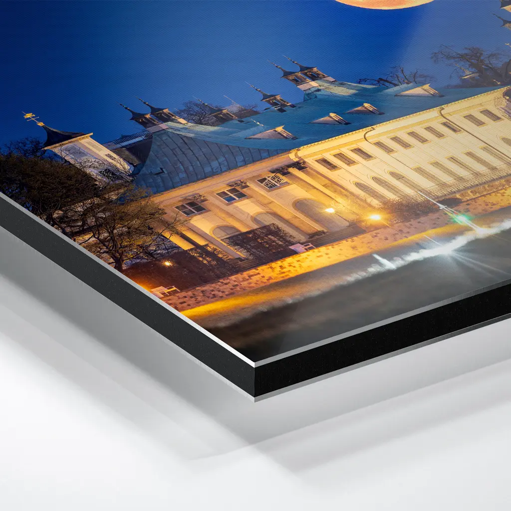 Neben den Fotopapieren die wir dir im nächsten Absatz erläutern, bieten wir dir auch einen hochwertigen UV-Direktdruck auf Alu-Dibond an. Bei einem Alu-Dibond Board handelt es sich um eine 3 mm starke, formstabile Aluminiumverbundplatte mit einem schwarzen Polyethylen-Kern, der von zwei dünnen, matt weiß lackierten Aluminiumdeckschichten umschlossen wird. Auf dieser weißen Oberfläche wir das Foto im UV-Direktdruck auf das Alu-Dibond Board gedruckt.