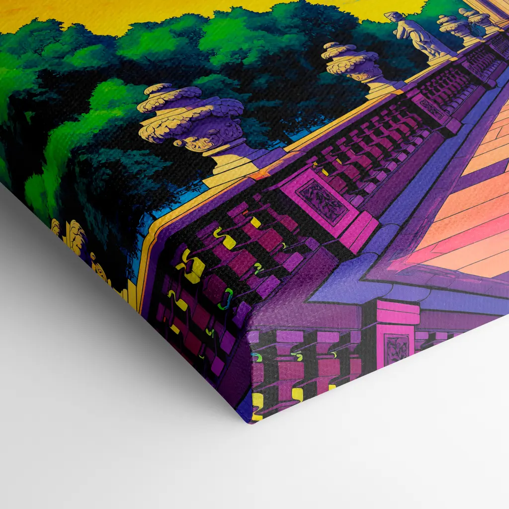 Beim Aufbringen auf den Keilrahmen wird das Motiv an den Rändern gespiegelt sodass beim Umspannen um den Keilrahmen lediglich nur 1 cm vom eigentlichen Motiv umgespannt werden. Du kannst also fast die gesamte Schönheit des Motives auf deiner Leinwand genießen, ohne dass durch das Umspannen wichtige Bildinhalte verloren gehen. Mit Hilfe der Holzkeile ist ein selbstständiges nachträgliches spannen jederzeit möglich.
