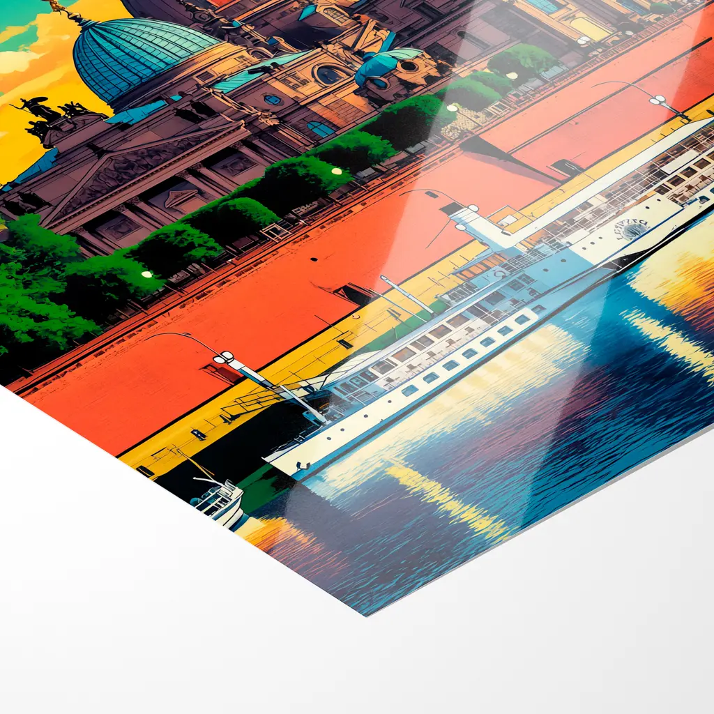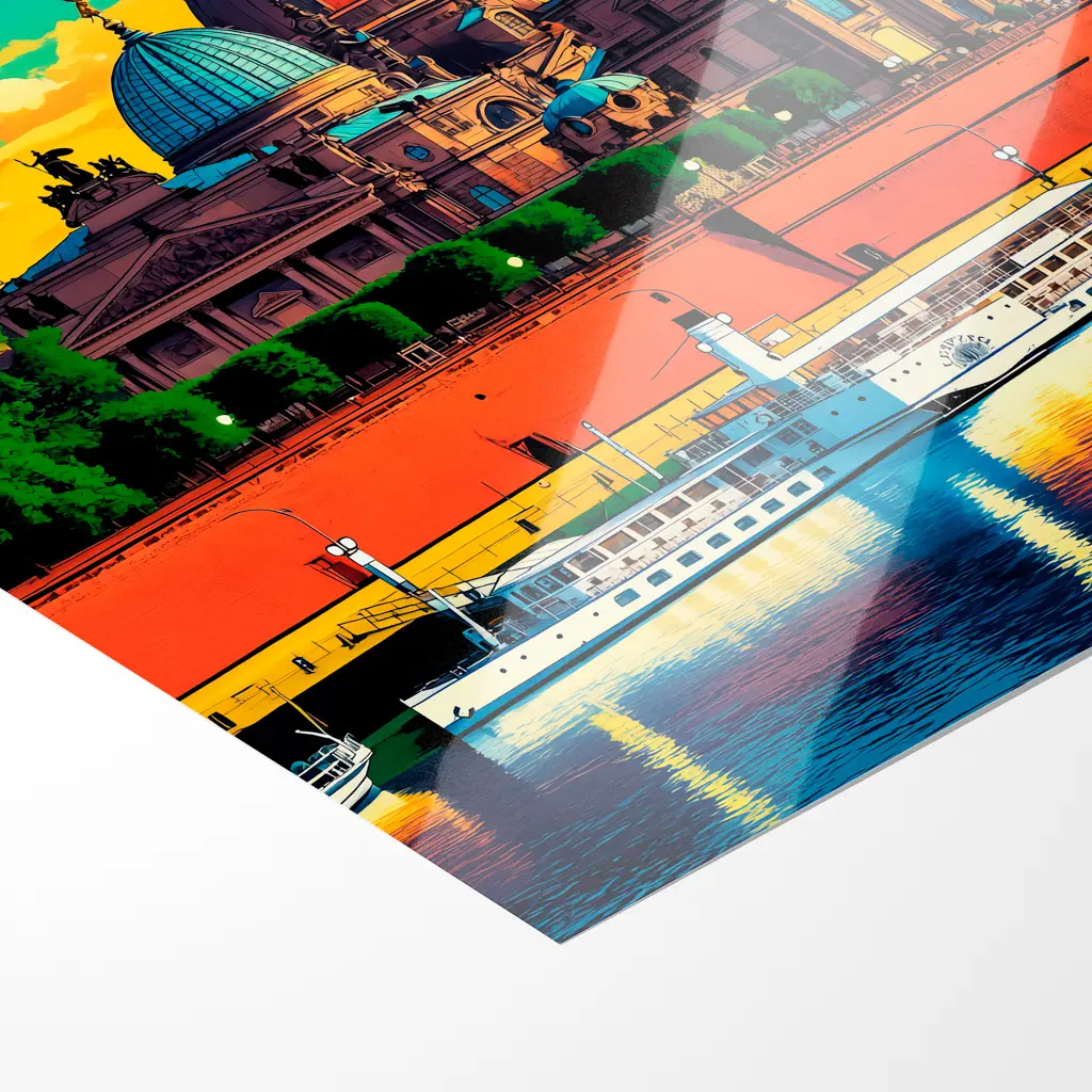 Ein glänzendes Papier welches dadurch leider anfällig für Fingerabdrücke ist. Weiterhin ist es nicht für die Rahmung hinter einer Glasscheibe geeignet. Die glänzende Oberfläche sorgt allerdings auch für eine sehr gute Farbbrillanz, eine schöne Tiefenwirkung sowie gute Kontraste mit reinen vergilbungsresistenten Weißtönen.