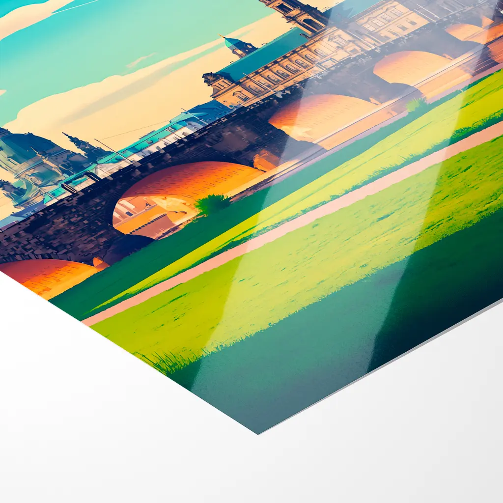Ein glänzendes Papier welches dadurch leider anfällig für Fingerabdrücke ist. Weiterhin ist es nicht für die Rahmung hinter einer Glasscheibe geeignet. Die glänzende Oberfläche sorgt allerdings auch für eine sehr gute Farbbrillanz, eine schöne Tiefenwirkung sowie gute Kontraste mit reinen vergilbungsresistenten Weißtönen.