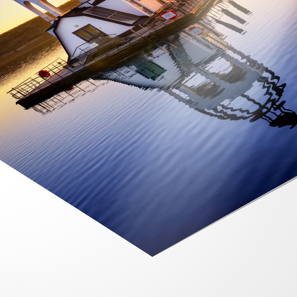 Ein glänzendes Papier welches dadurch leider anfällig für Fingerabdrücke ist. Weiterhin ist es nicht für die Rahmung hinter einer Glasscheibe geeignet. Die glänzende Oberfläche sorgt allerdings auch für eine sehr gute Farbbrillanz, eine schöne Tiefenwirkung sowie gute Kontraste mit reinen vergilbungsresistenten Weißtönen.