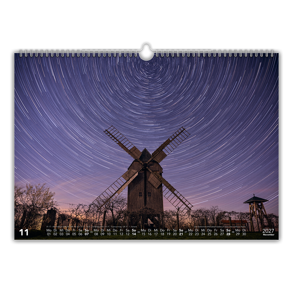 Die extrastarke Rückwand aus 1200 g/m² Buchbinderpappe sorgt für eine sehr wertige Haptik. Du wirst den Unterschied spätestens dann merken, wenn du den Kalender in deinen Händen hältst. Die dezente weiße Ringbindung ist unaufdringlich, stabil und macht das Umblättern ganz leicht. Sie harmoniert perfekt im dem neu gestalteten weißem Kalendarium. Dieses ist bewusst schlicht und elegant gehalten, damit die Fotos im Mittelpunkt stehen. Die Motive gehen über die volle Blattgröße – und lassen sich trotzdem problemlos ausschneiden und weiterverwenden, da es unten nur das Kalendarium und eine kurze Bildbeschreibung gibt, sonst keine störenden Elemente wie große Texte oder Logos auf dem Foto.