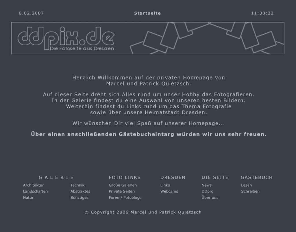 Eine kleine Zeitreise in die Vergangenheit. So sah ddpix im Februar 2007 aus. Die Webseite war zu diesem Zeitpunkt erst wenige Tage alt.